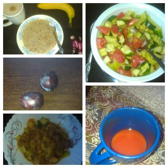 Обед:Овощное рагу с куриной печенью.Салат из овощей с ол.маслом.Томатный сок