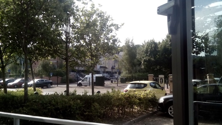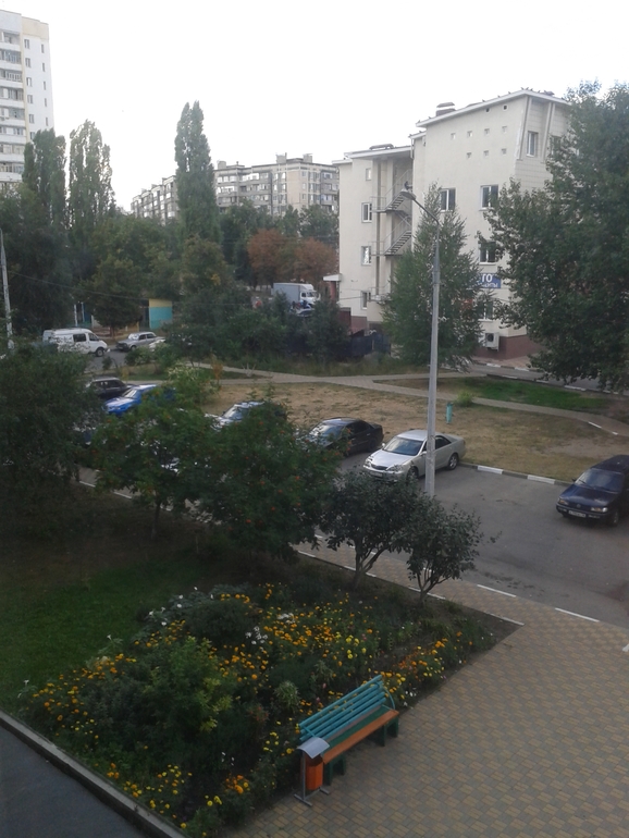 Такой вот вид из окна: парковка, соседние дома, поле -всё.