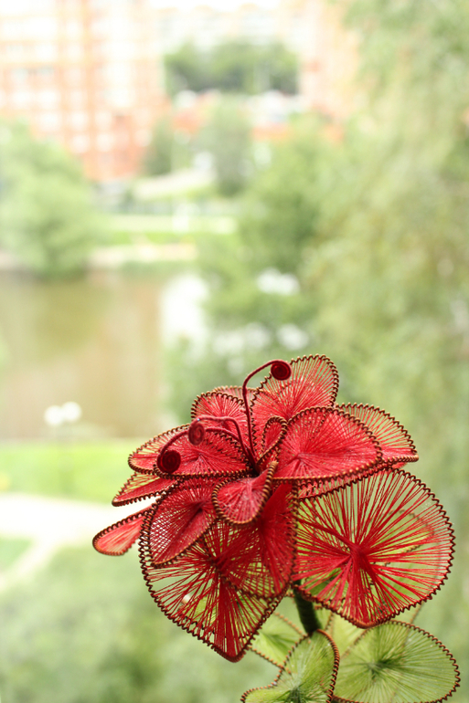 Это муж мне сплел цветочек, наверное я потому не замечаю что там за хмурь за окном. Там, в принципе, вид виден))