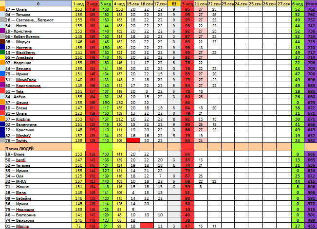 Таблица.... кстать заметили что у нас в претендентах осталось всего по 1 представителю от племени Света, Льда, Флоры и Земли...