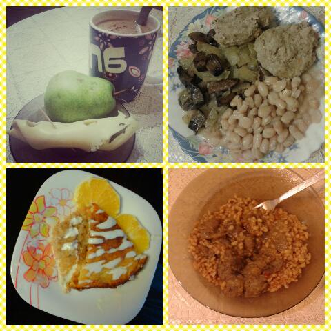 42.сегодня и завтра у меня выходной, надо побаловать себя. З- Яичница с рисом, о-запеканка фарш/кабачок/помидор/лук, п- чай+шарлотка! У- мороженое или творог с ягодами. Завтра еще массаж.