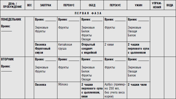 Сегодня и завтра кушаем углеводы. Примерный рацион (из книги):