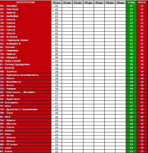ПП 12, спорт 5 (кардио), джокер 4 (понравилась мадам), уход 1 (как обычно, конрастный душ, скраб, крем для тела)