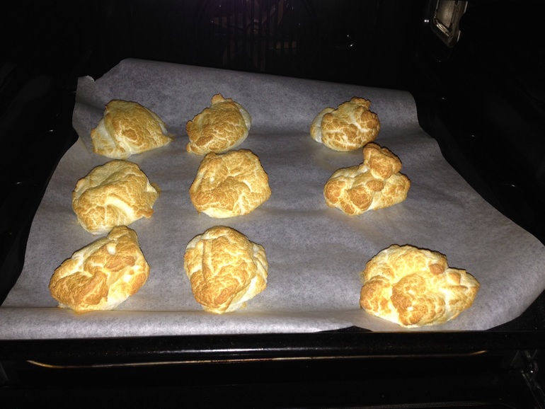 Таблетки, чуть замокают (5 минут) в маленьком количестве белка, потом растираю чайной ложкой. Добавляю в остальной белок и взбиваю миксером. Всё. Ставлю в разогретую духовку на190 градусов на 5-6 минут. Они такие мягкие получаются (ни как покупные). Но настроение на целый день классное. Кстати вторая порция - положила 2 таблетки, тоже вкусно с чаем из ромашки)