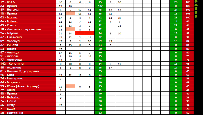 Наташа, не успеваю я опять, на работе завал. Выползаюв 8 вечера, сил нет вообще(( вычеркивайте меня