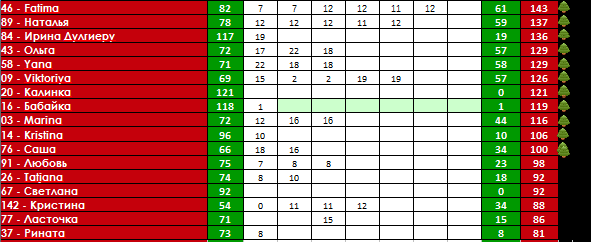 #51 Пп 11 Спорт 5 Джокер 2 Уход 1 (ммм...сегодня был супер уход, сауна, скраб для тела, жесткощетка, лосьон) Итого: 19
