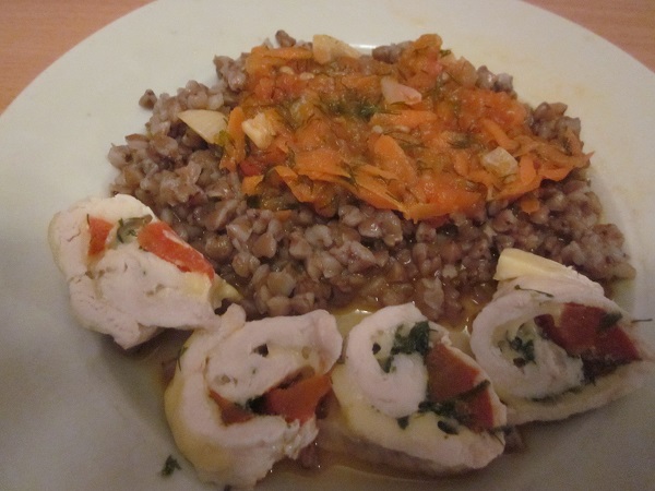 3. рулетики - филе отбить, посолить на каждый кусочек выложить болг.перец, зелень, свернуть, воткнуть зубочистку и на пару.