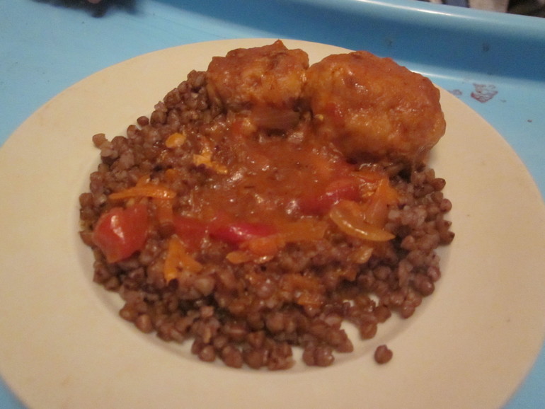 Мясо с макаронами не ем, а рис и гречу часто. Крупа и белок отлично сочетаются в обед)