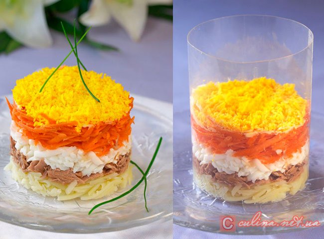 И еще мимозу пп. Очень вкусно на мой взгляд и красиво, но яблоки желательно бы отжать. Мои дали сок и немного не эстетичный стал салат.