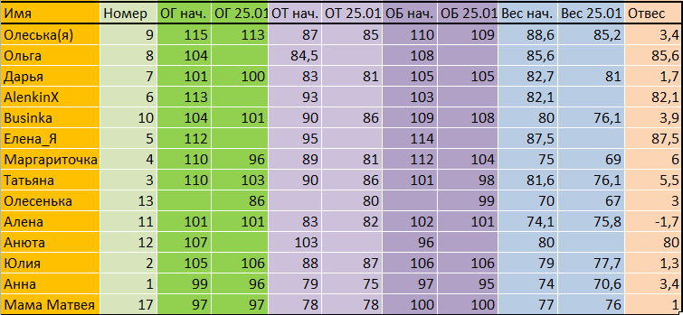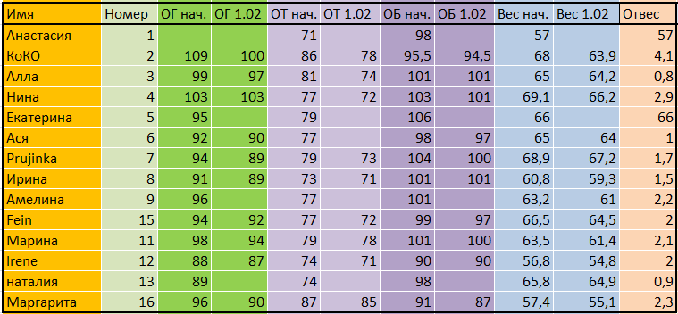 Тааак девчонки не расслабляемся))) идём к своей цели!спасибо за табличку Олесь!