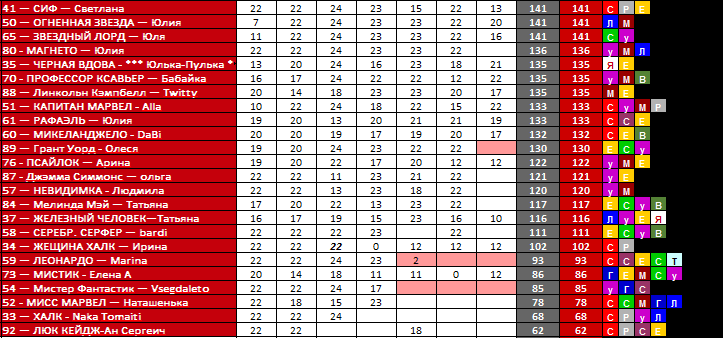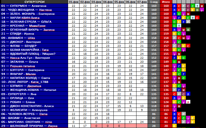 № 57 Запишите мои позорные по 13 баллов за воскресенье и понедельник, два дня занимались поклейкой плитки около лестницы джокер со спортом я вообще не выполняла, только ПП, да и то с трудом.