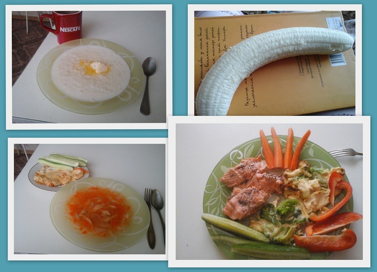 У меня тоже как то жиденько было, завтрак и обед норм, а вот ужин-в 5 часов с'ела яблоко и все. Ходила на репетицию (юбилей у коллектива в котором я танцевала 10 лет в субботу, выпускники тоже выступить должны). Вернулась поздно, решила уже не есть