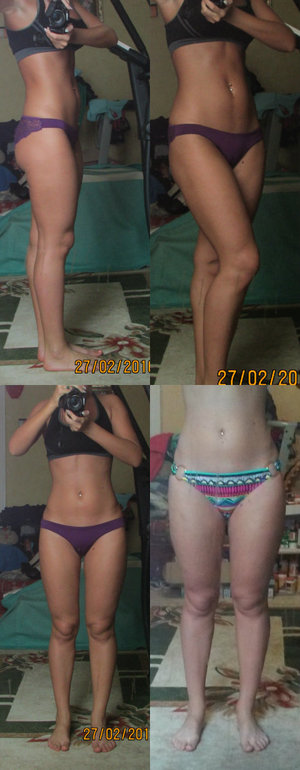 Все что касается спорт-питания(отзывы, обмен опытом, советы)Всем доброго дня! Сегодня прошла 5 тренировку 4 недели Беты в Т25..... Ценители и любители Шона поймут о чем речь.... за спиной 2 месяца тренировок. Но!!!!!! Весы показывают только минус 0,5 кг, замеры сантиметровой лентой тоже молчат.... Мотивации поубавилось.... Бросать тренировки я, конечно не буду, но прибываю в расстроенных чувствах... За питанием слежу, 2 недели назад выяснилось, что мои 1300 - 1400 калорий в день мало для меня (мой рост 168, вес 60,5), пытаюсь увеличивать, кушать на 1 500 хотя бы. Но мне кажется, что ем целый день и такими большими порциями.... Фото прилагаю, первые три сделаны вчера после тренировки, последняя в первых числах января. Все косяки в питании, почему вес стоит??? Фото под кат.