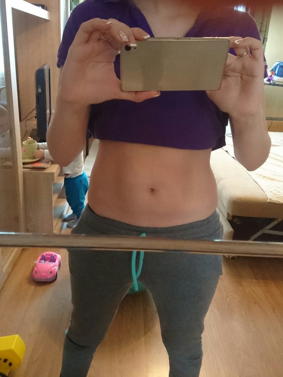 лишнего веса вроде нет, а живот есть. В этом собственно и проблема. Может виною мое быстрое похудание... Результатом-то я очень довольна - 47,5 кг текущий вес. (Кому интересно читайте в дневнике как худела и как целллюлит убрала ) Но видимо мышцы не готовы были к такому резкому изменению в весе и живот как следствие стал дряблым. То есть пока стою еще более менее, но если сяду он не красивый