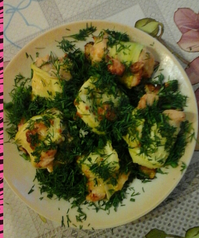 Рулетики из кабачков с куриной грудкой (Вкусненький ужин)
