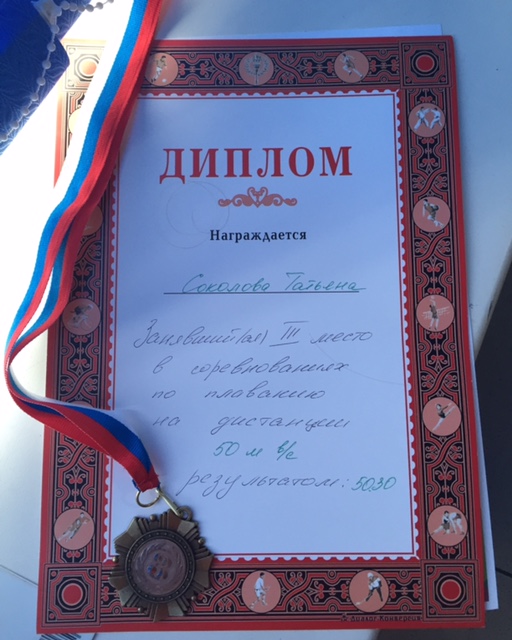 Итог: 3 место кролем!!!! Медалька и диплом!!!