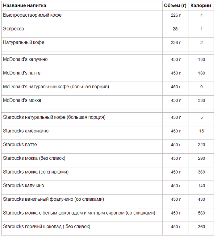 Эх я больше всего люблю мокко в старбаксе - 360 ккал - это ж мой ужин))