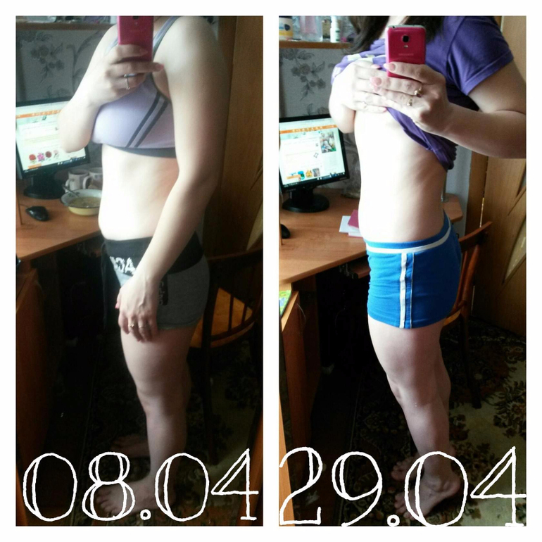 Результаты хоть и маленькие,но я их вижу.Майки,шорты,штаны которые всегда были впритык,сейчас свободно.