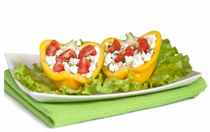 - Перец разрезать пополам, выложить на него сырную начинку,