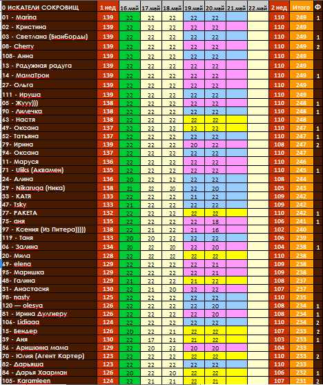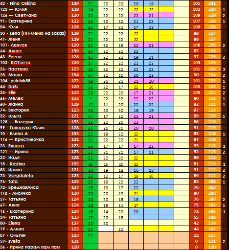Таблица .. ГИДЫ МОГУТ НАЧИНАТЬ ПРИСМАТРИВАТЬСЯ....![]()