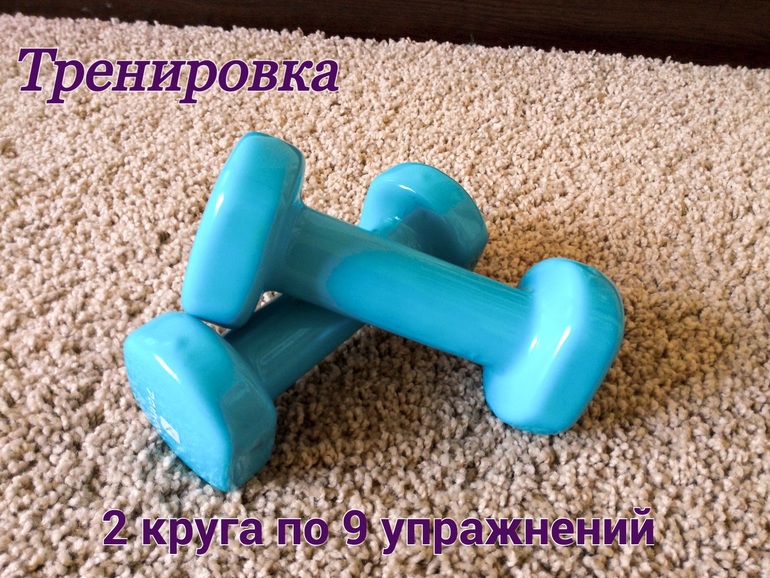 Тренировка силовая - 2 круга по 9 упражнений (гантели по 1,5 кг)