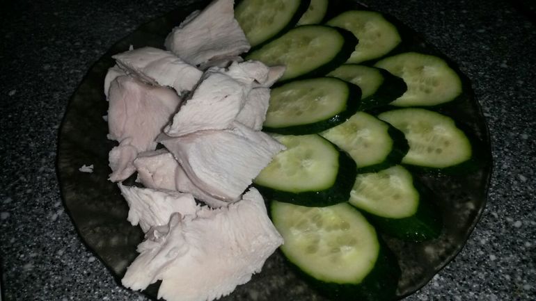 Бульон. Рыба. Курица. На гарнир гречка, овощи сырые или тушеные.