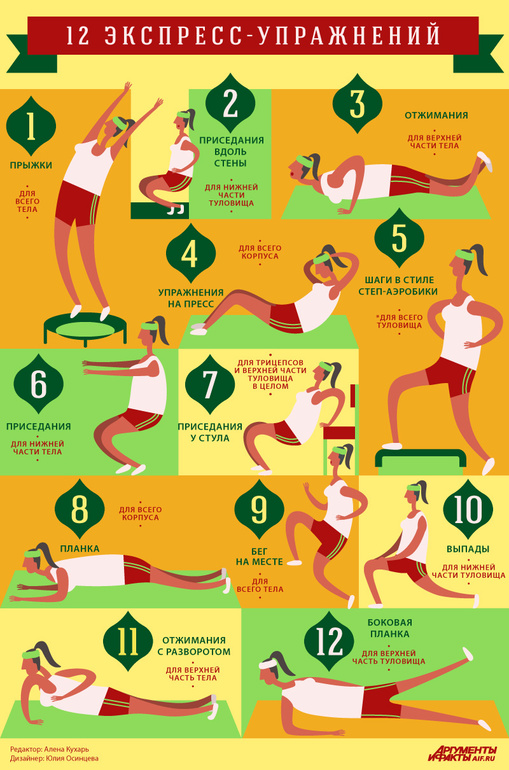 У меня из этой таблицы в круговой тренировке 1, 2 , 3 (от скамьи), 4, 5 , 6, 8, 10. Делаю 4 круга. Планирую добавить отжимания от скамьи для трицепсов -7, и боковую планку - 12.