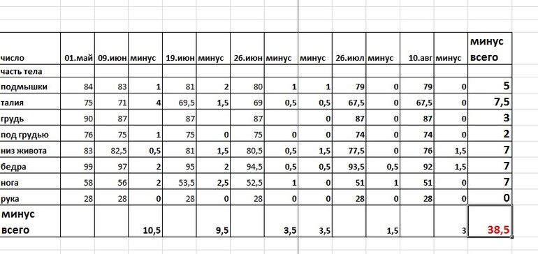 Я на почти ПП))) и спорте получается -4,5 кг за 2,5 месяца) и вот такие объемы ушли)