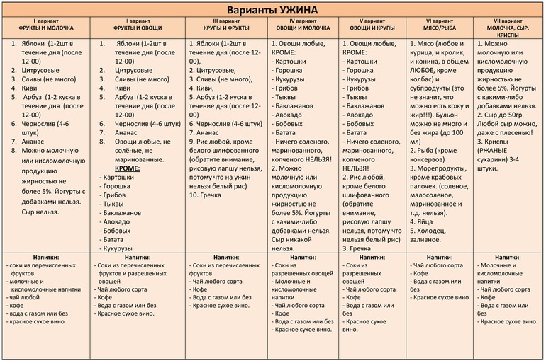 Ужин соблюдаю строго по вариантам, чередую. Но чаще всего молочка +овощи, либо фрукты. С удовольствием делаю мясные ужины, либо рыбу.