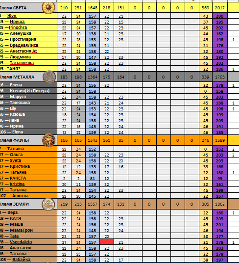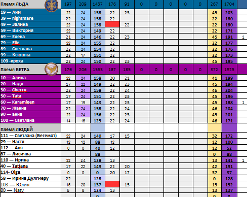 58 - Ирина Дулгиеру, 103 - Юлия, 80 - Naty