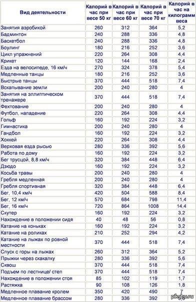 Вот вам несколько табличек в помощь - понятно что тут всего чуть из еды - так что найдите ккал своей любимой еды самостоятельно...
