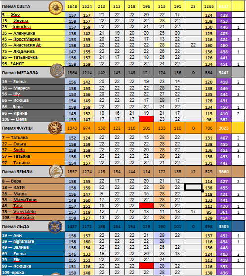 таблицу сейчас обновлю и жду ваших решений в личку...
