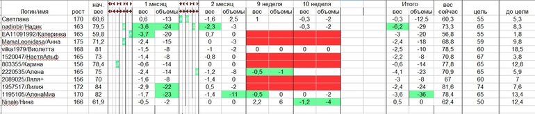 У меня вес 78,4. Не знаю какой минус написать, т.к в последней табличке было 78,9, а на самом деле 78,5. Где-то или я ошиблась или в табличку ошибка закралась. Но это в принципе не важно. Главное, что процесс идет :)))