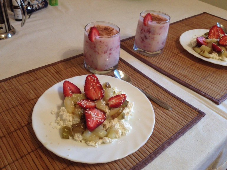 Да, я как раз с кефиром, клубникой и корицей делаю - никогда не добавляла творог, нужно попробовать