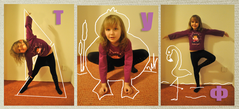 Так вот, дорогие мои, сегодня вы должны написать таким образом название своего факультета. Каждую букву надо держать или тянуть 1 минуту. Ножки/ручки прямее, выпады глубже, тянемся дальше...