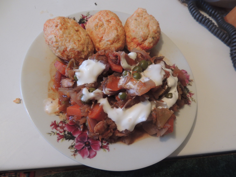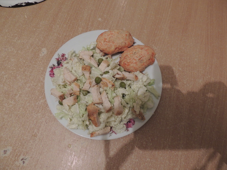 3.Обед-котлеты куриные +салат с пекинкой,зелёным горошком,курицей и сметаной