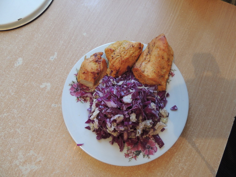 5.Ужин-куриная грудка+салат из красной капусты с красным луком и сметаной