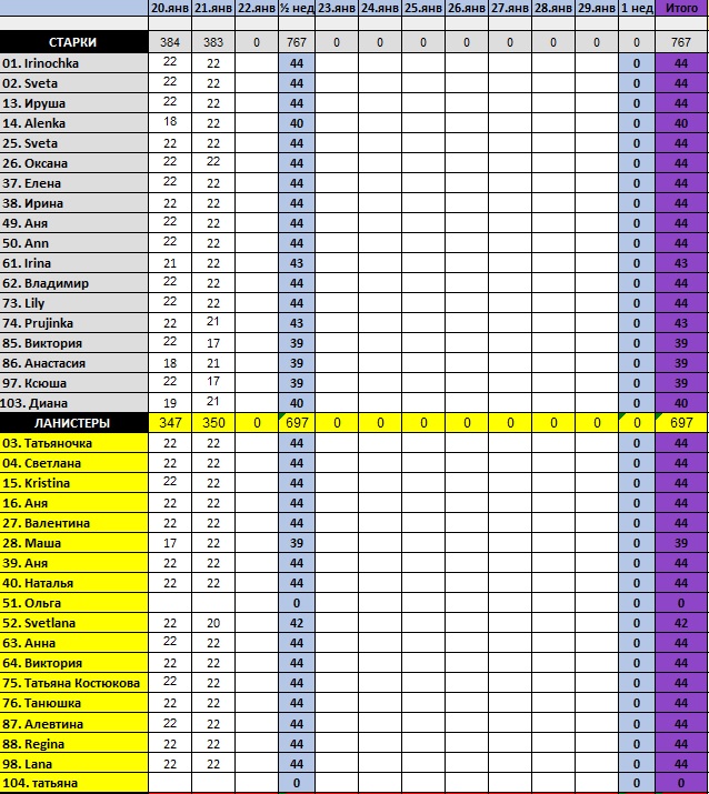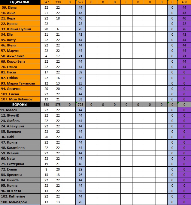 ТАБЛИЦА БУДЕТ ДОБАВЛЯТЬСЯ ПОСЛЕ 12 дня по МСК... не забывайте отсылать отчеты в гугл-форму....![]()
