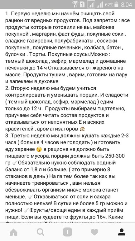 Дневники худеющихДевочки сегодня первый день моего похудения)))все худеют с понедельника, а я со среды))) итог на завтрак кофе с молоком и сахаром (не могу от него отказаться),знаю что её правильно,но первый же день))) обед овощной суп с грудкой,полдник морковь тертая без всего( ужин грудка и пол помидоры, чуть позднее съела апельсин))) весь день пью чай зелёный,чёрный,красный, воду вечером сделала немного упражнений)))(что бы не есть) и в конце обертывание с глиной и эфирные маслами! Думаю для одного дня лишку,но я в отпуске надо делать все,что бы не кушать))) всем спасибо кто прочитал