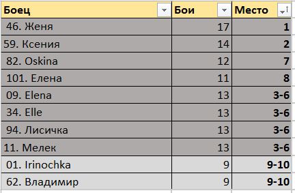 КЛАН ПОБЕДИВШИЙ ПО КОЛИЧЕСТВУ БОЙЦОВ: