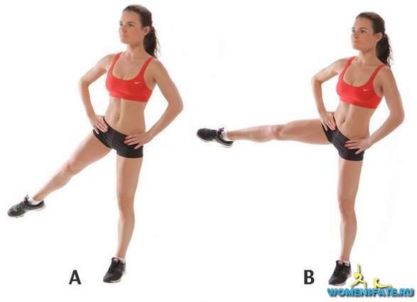 Махи ногами 4 подхода, 20 повторений, каждой ногой.