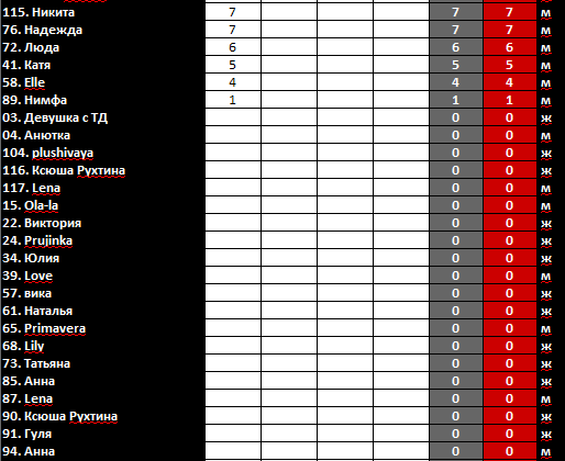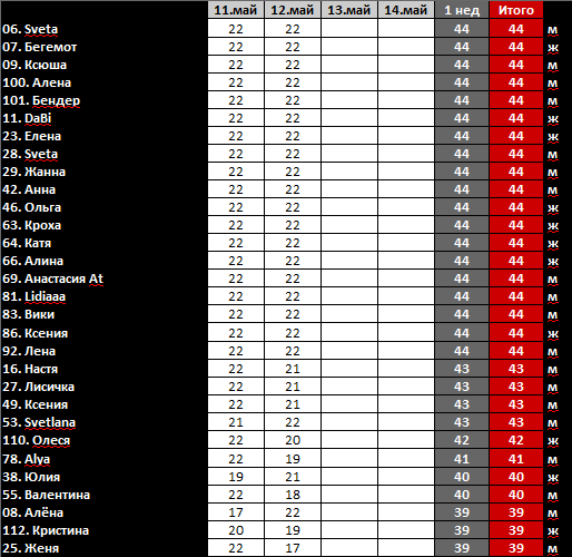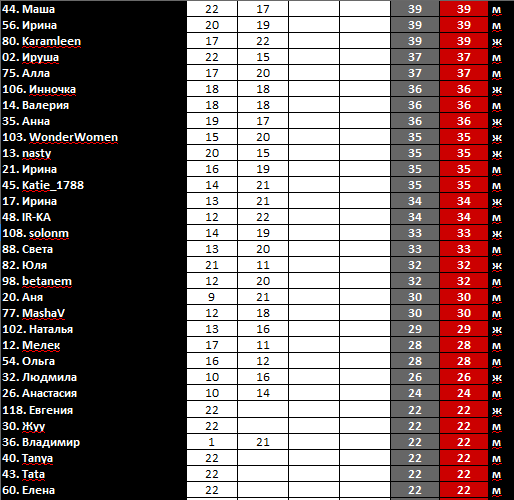 #47 пп 12 спорт 0 джокер 4 (часть упров заменино на травмаджокер) уход 1 (баня :)) итого 17