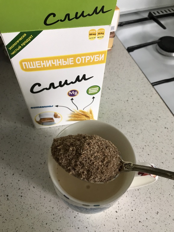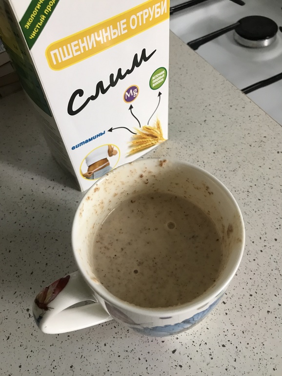 1. Ряженка с ртрубями. 200 г ряженка маложирной + 2 десертные ложки отрубей.