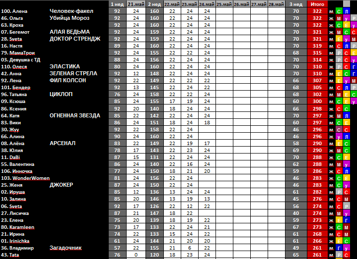 Четверг 25.05: ПП 12, Уход 1. Итого 13 баллов.