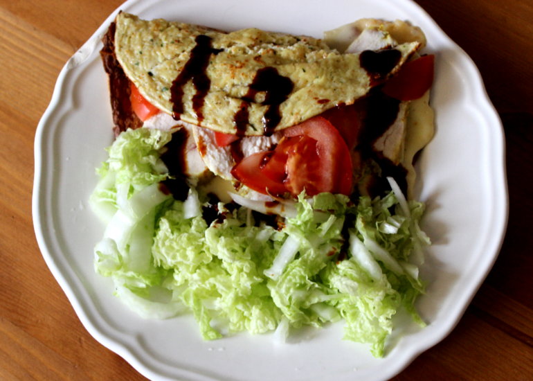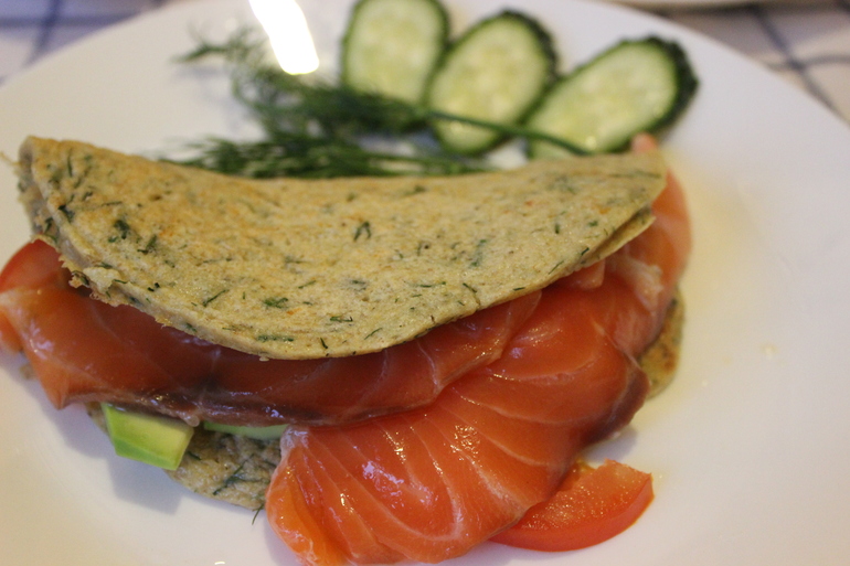 Начинка может быть любая. Сыр с помидорами, куриная грудка на гриле, мясо, малосольная семга и авокадо, куриная ветчина, листья салата и зелень.