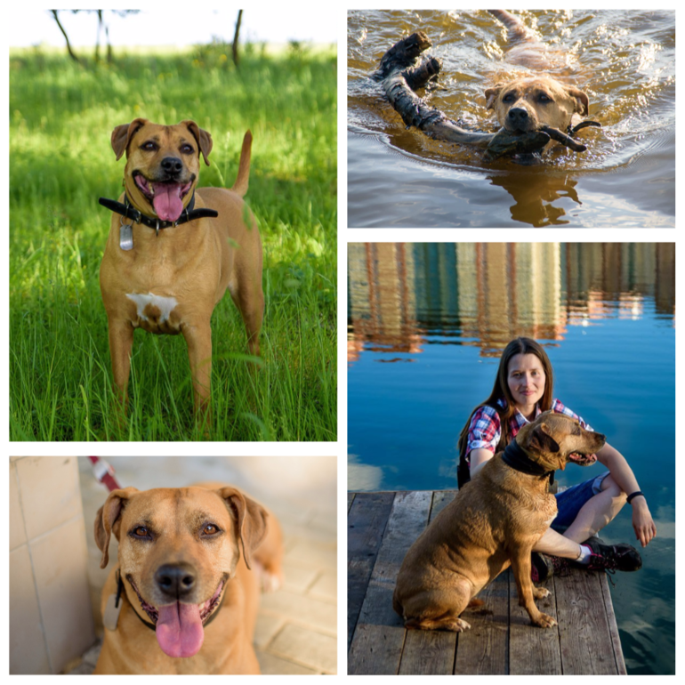 # у меня есть собака, вот именно такое сочетание, как в цитате. Это универсальный тренажёр. Хочешь или нет, а два раза по полчаса минимум в дождь, жару и холод, первого января и остальные 364 дня. 2500 шагов в среднем за стандартную прогулку. Но иногда уходим гулять надолго в поля. Ещё она любит плавать.