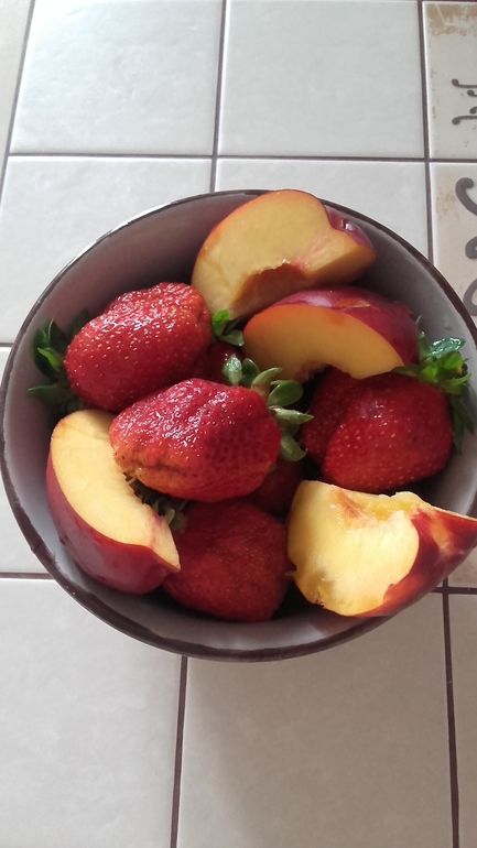 Перекус- плоский персик, 3 виноградинки, ч.л. куриного бедра