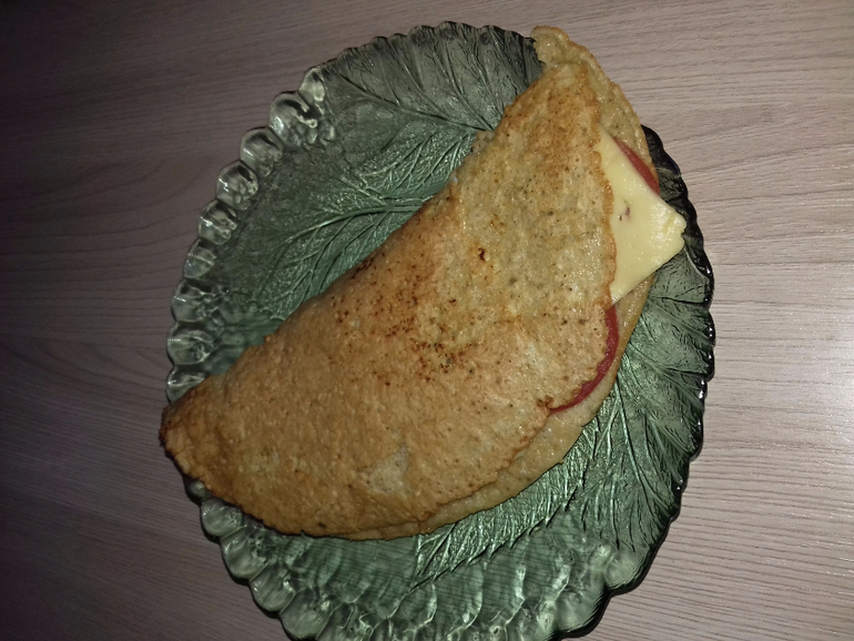 Я делаю так 1яйцо,50гр цельные хлопья, молотые или овсяная мука и 70мл молока. Выливаю все это дело на разогретую сковороду и накрываю крышкой. Через мин переворачиваю. Одну половину посыпаю тертым сыром, кладу огурец или помидор, второй половиной закрываю. выключаю плиту. Готово.