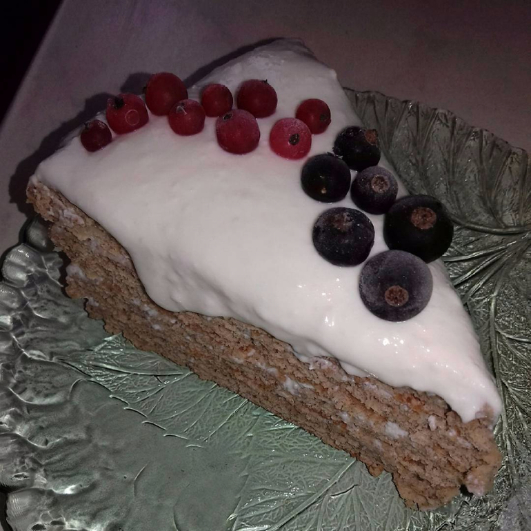 Выглядит красиво). А коржи без сахара или с сахзамом?