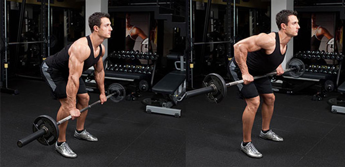Включая в работу мышцы спины и бицепсы, потяните штангу на себя, к животу. Сделайте паузу в течение 1 секунды, а затем вернитесь в исходное положение. Повторите